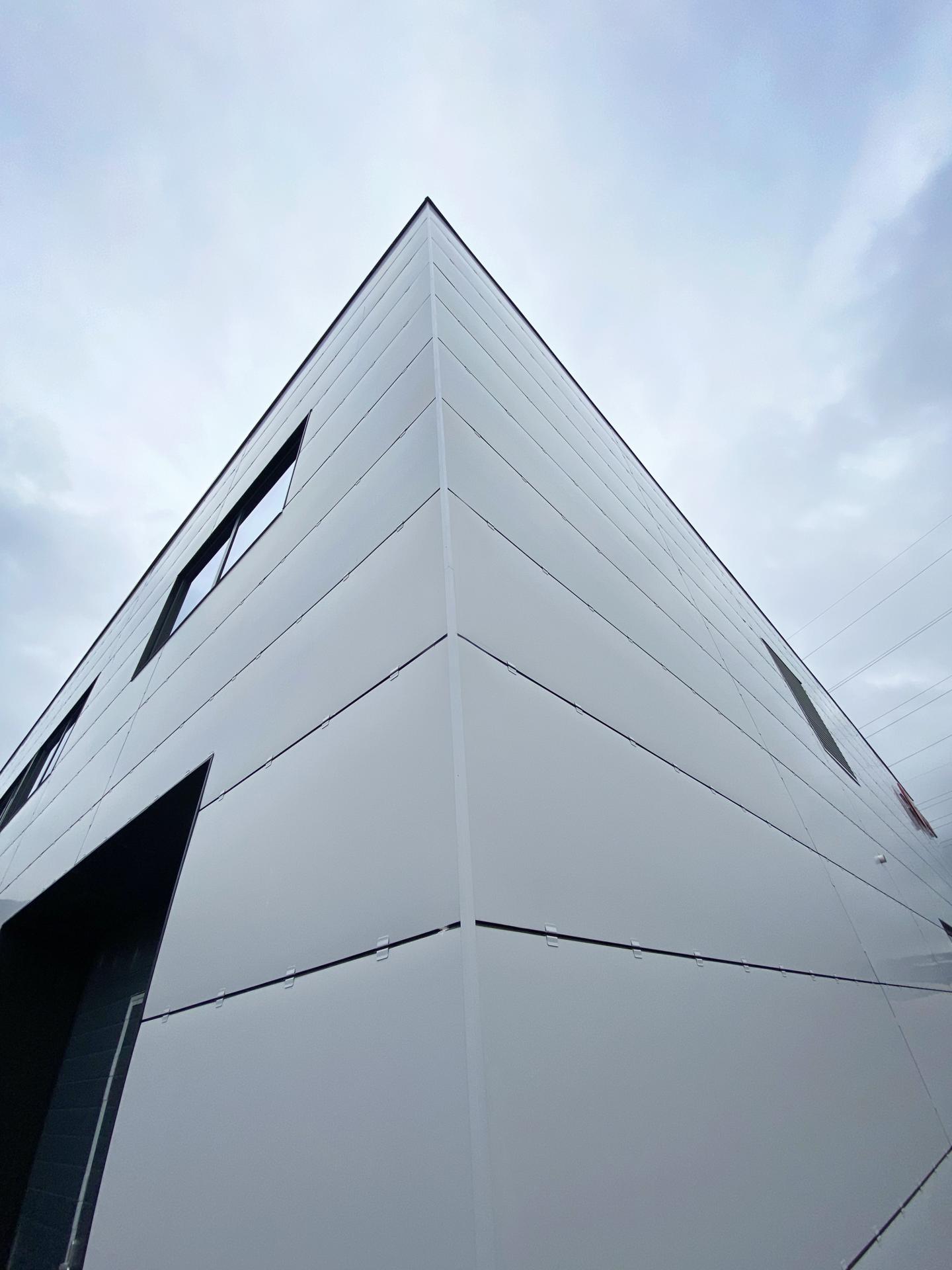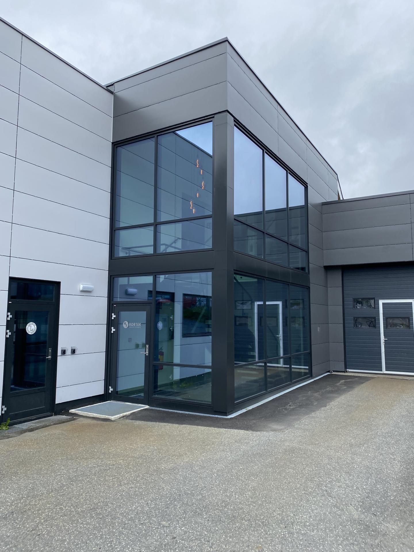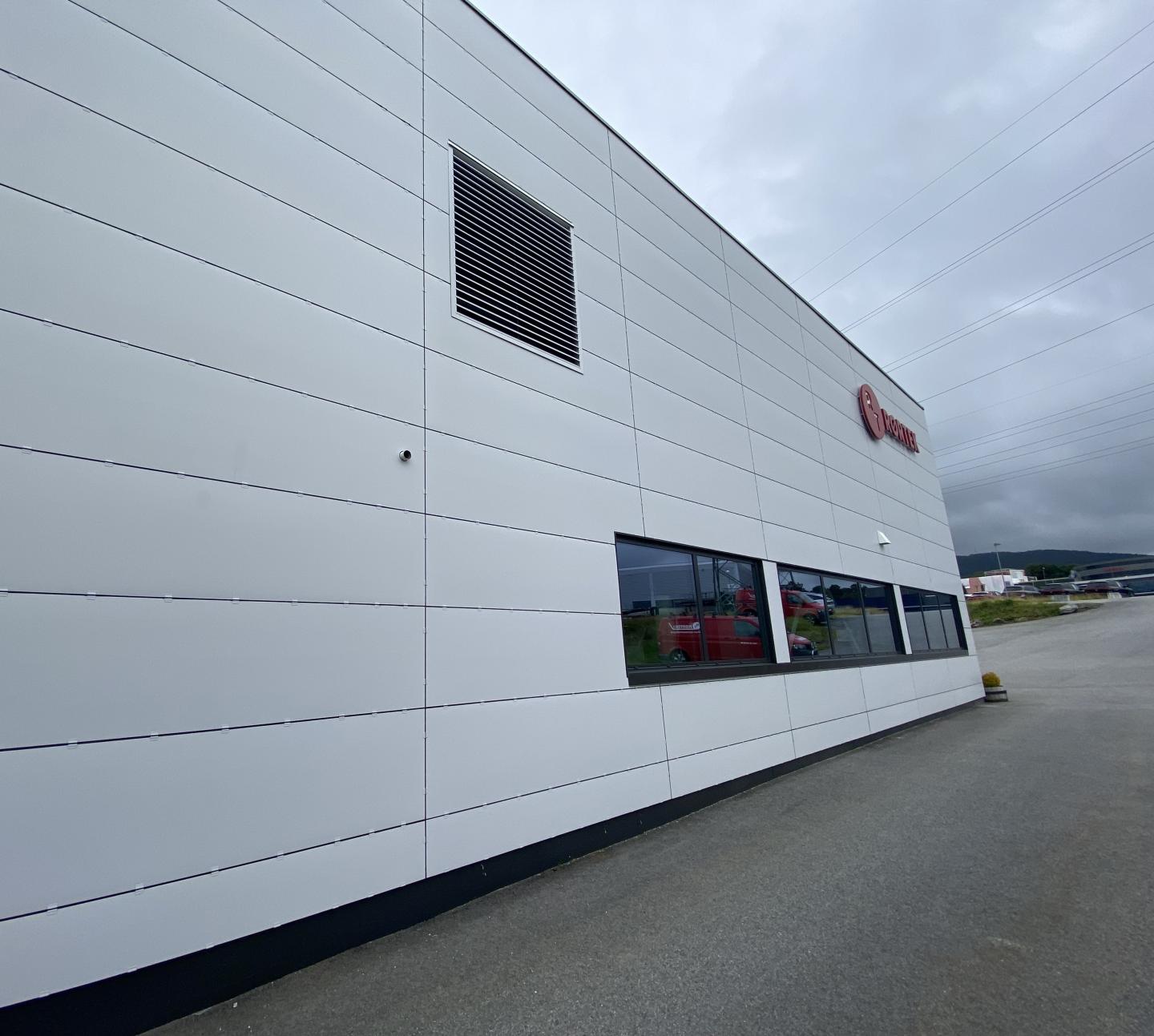 Næringsbygg som ble etterisolert og renovert siste halvdel av 2022. Fasaden var ferdig i desember 2022, og Fixade fasadeløsning er brukt sammen med fasadeplater fra Steni. Huseier utførte selv monteringen av fasaden.